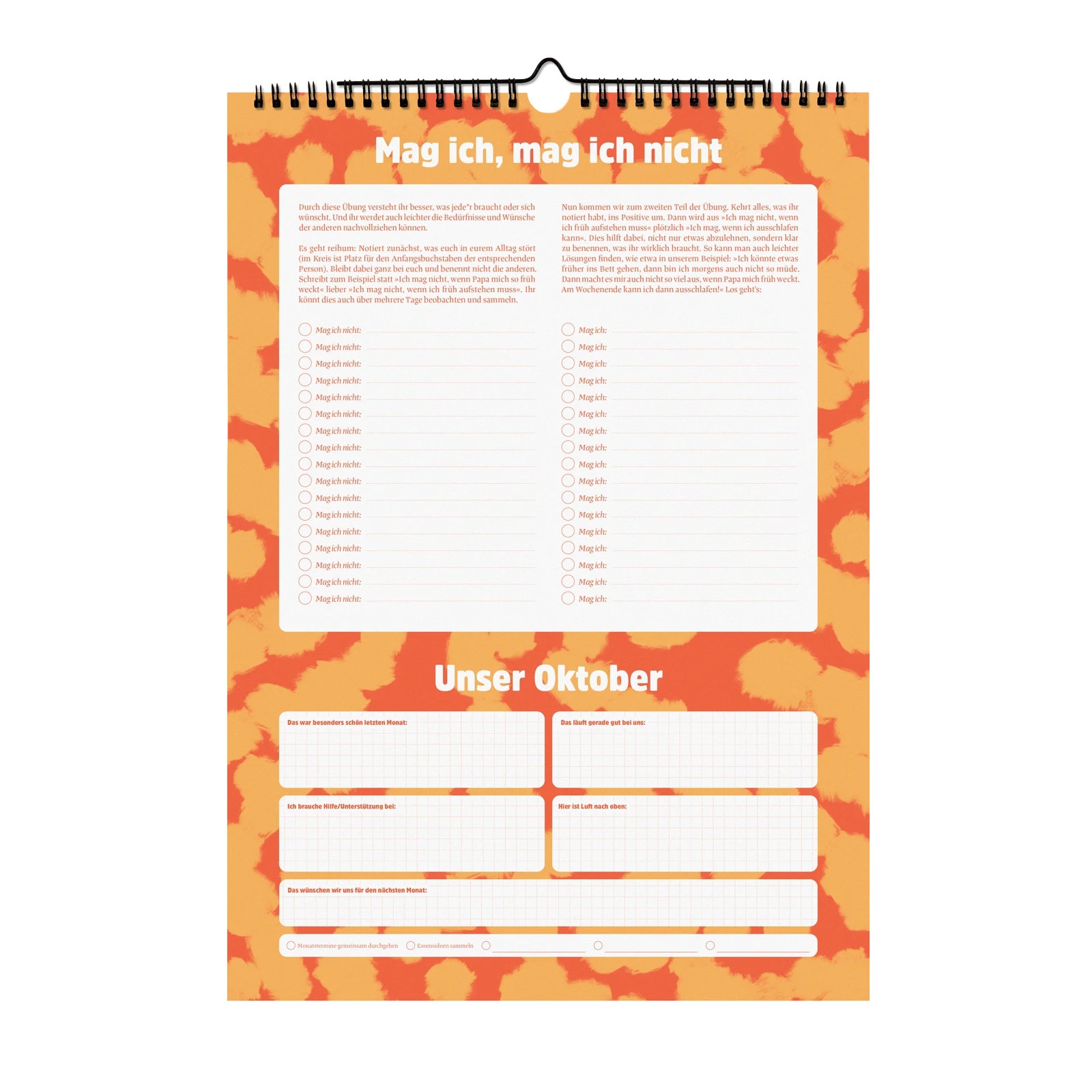 Übersicht trifft Achtsamkeit – für die ganze Familie. Unser Monatskalender für die Wand hält euren Familienalltag 2026 im Blick und bringt ganz nebenbei auch ein wenig Magie der Verbundenheit in euer Zusammenleben. Denn die Übungen, Tipps und Reflexionen schaffen einfach umsetzbare Anlässe, um gemeinsame Zeit zu verbringen. Euer neues Familienritual für Entschleunigung und mehr Verbundenheit!