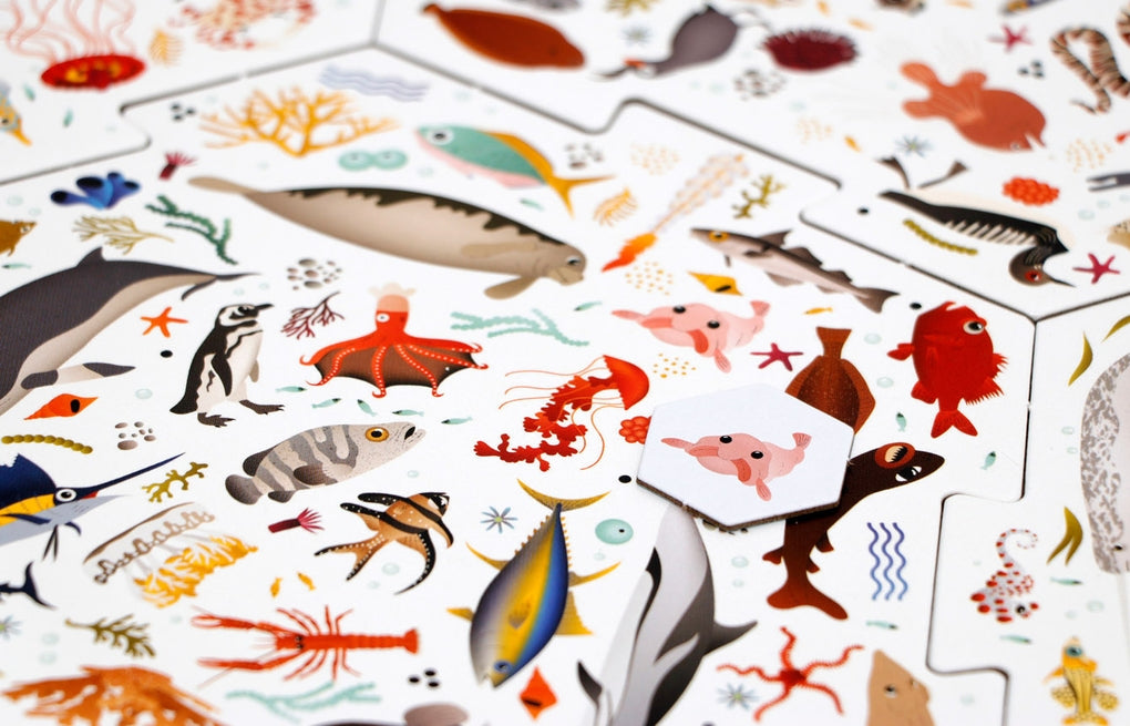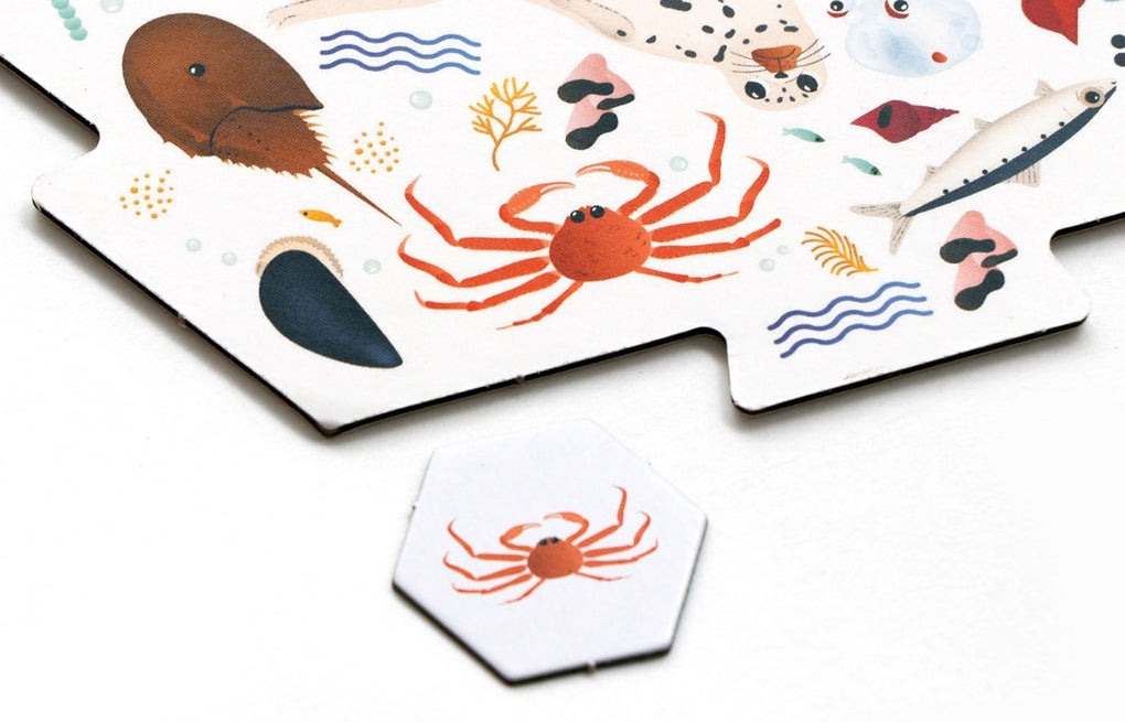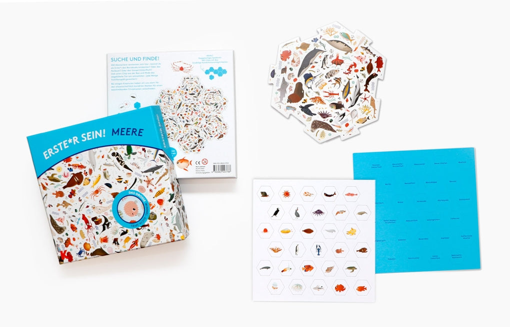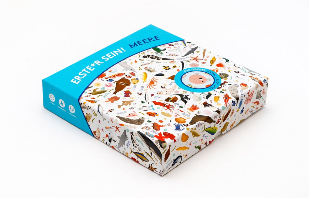 300 Meeresbewohner tummeln sich auf dem Spielbrett dieses ausgeklügelten Spiels. Zieht einen Spielstein aus der Box und findet als Erste*r den abgebildeten Meeresbewohner auf dem Wimmelbrett! Mit dem doppelseitig illustrierten, immer wieder neu kombinierbaren Spielbrett kann keine Routine aufkommen! Diese lustige und herausfordernde Spielidee ist einfach zu verstehen, aber Vorsicht - Erste*r sein! Meere macht Erwachsene wie Kinder gleichermaßen süchtig!
