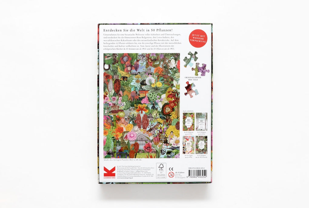 Unternehmt eine botanische Weltreise voller Schönheit und Überraschungen mit diesem 1000-Teile-Puzzle, das 50 der schönsten und prächtigsten Pflanzen zeigt, die der Mensch kennt. Auf dem beiliegenden A2-Poster erfahrt ihr, wie die Welt der jeweiligen Pflanze mit unserer eigenen Geschichte und Kultur verflochten ist - von der scheinbar vertrauten Tomate bis zur unheimlichen Alraune. Einige der Pflanzen haben eine beunruhigende Vergangenheit, während andere unsere Kreativität beflügelten oder ganze Zivilisationen zum Blühen brachten.