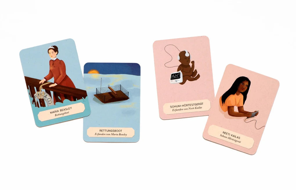 In diesem Memo geht es darum, 25 Frauen und ihre jeweilige Erfindung zu finden und zusammenzubringen. Wer die meisten passenden Pärchen hat, gewinnt! Das Booklet mit Geschichten zu Leben und Erfindungen der Frauen sorgt dafür, dass man beim Spielen immer wieder über die genialen Frauen spricht. Und was es da so alles zu entdecken und erzählen gibt...!
