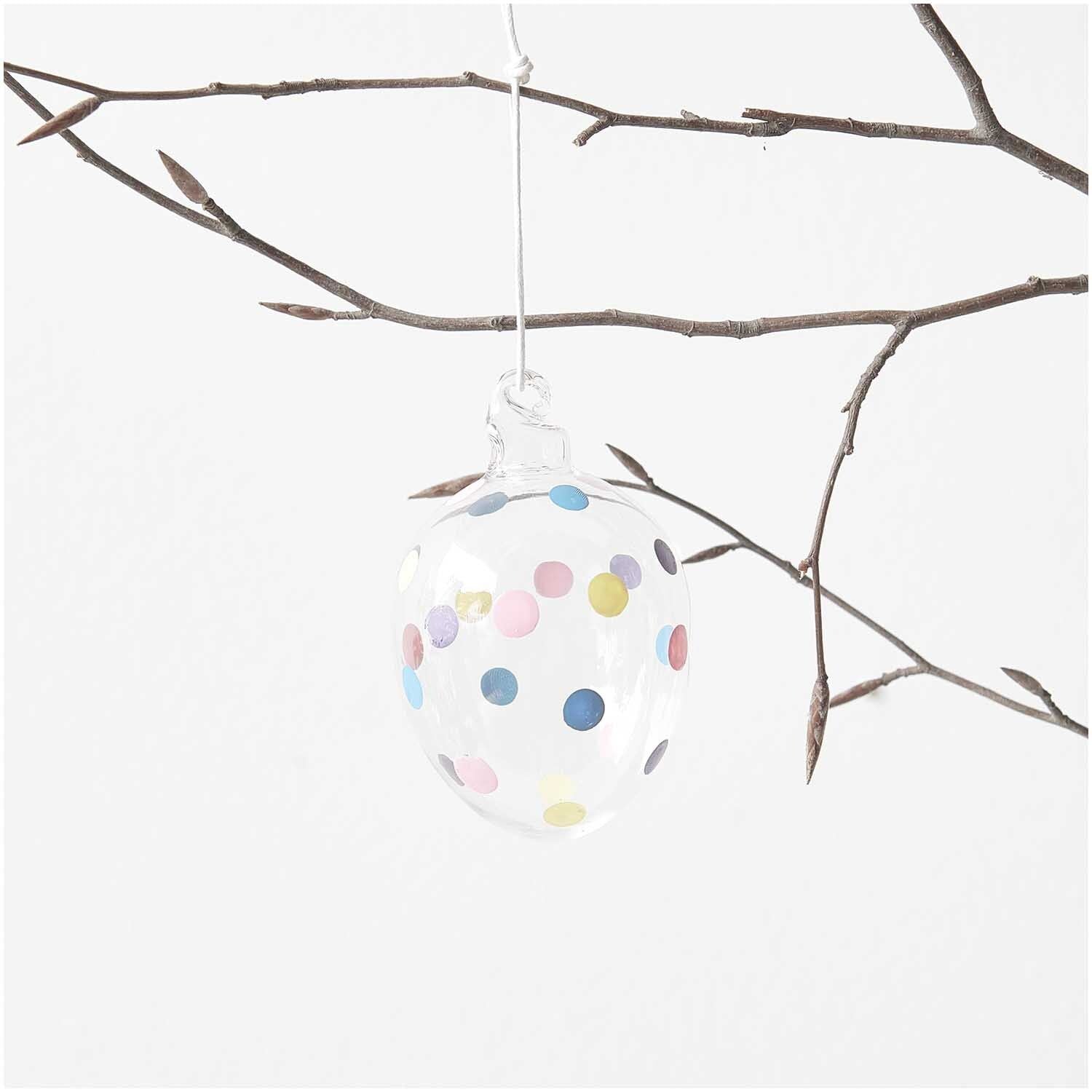 - handbemaltes Glas Ei zum Aufhängen mit bunten Punkten