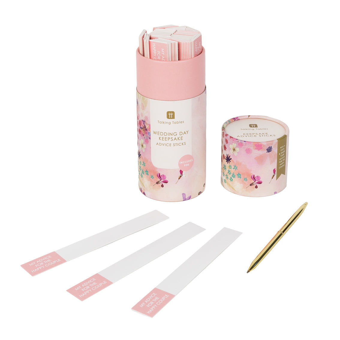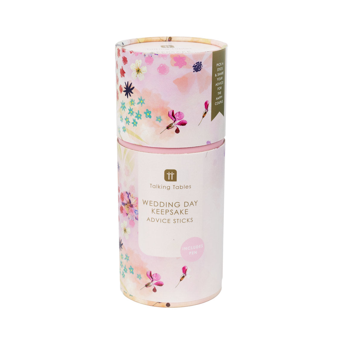 Genau das Richtige, um die Braut an ihrem großen Tag zu verabschieden. Dieses Ratgeber-Set ist eine schöne Idee für einen Junggesellinnenabschied, bei dem Freunde und Familie ihre Weisheiten mit dem glücklichen Paar teilen können. Es eignet sich auch hervorragend, um es am Hochzeitstag auf den Tischen zu platzieren, damit die Gäste ihre Ratschläge aufschreiben können. Die Packung enthält 100 Ratgeber-Stäbchen und einen Stift für liebevolle Notizen.