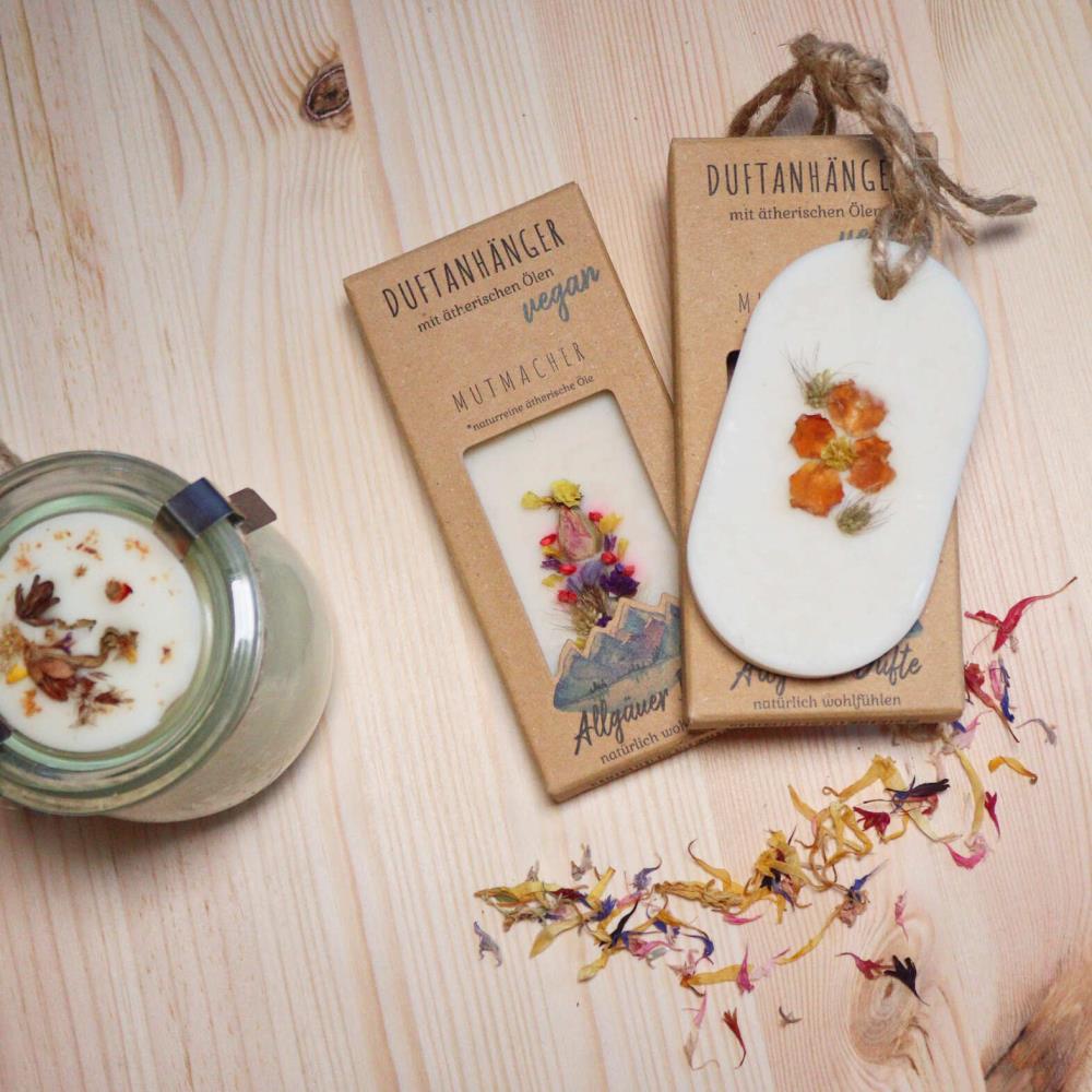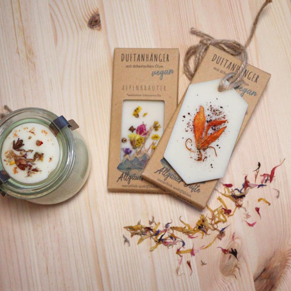 Die Duftanhänger von Allgäuer Kerzen sind handgefertigte, vegane Raumduft-Accessoires, die ausschließlich aus naturreinen ätherischen Ölen bestehen. Hergestellt in einer kleinen Manufaktur in den Allgäuer Alpen, vereinen sie Nachhaltigkeit, Ästhetik und aromatherapeutische Wirkung.